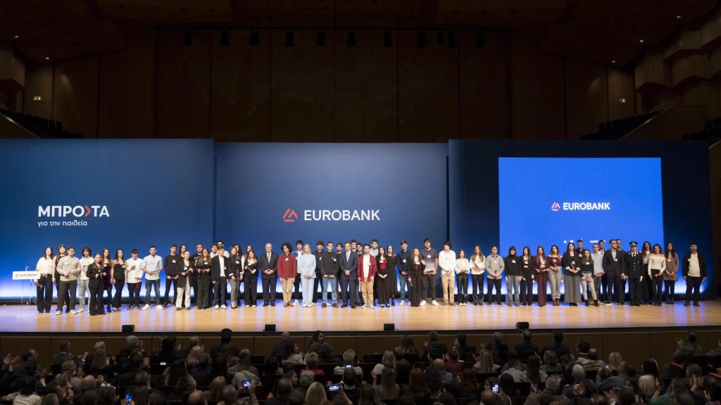 Η καθιερωμένη τελετή που εντάσσεται στο πλαίσιο του Προγράμματος Εταιρικής Κοινωνικής Ευθύνης Μπροστά για την Παιδεία, το οποίο συμπληρώνει φέτος 22 χρόνια αδιάλειπτης παρουσίας έχοντας βραβεύσει συνολικά 23.554 αριστούχους σε όλη τη χώρα, πραγματοποιήθηκε στο Μέγαρο Μουσικής Αθηνών, το απόγευμα της Τρίτης, 19 Νοεμβρίου 2024, παρουσία της Υφυπουργού Παιδείας, Θρησκευμάτων και Αθλητισμού, κας Ζέττας Μακρή, του Πρόεδρου του Διοικητικού Συμβουλίου της Eurobank, κ. Γιώργου Π. Ζανιά, του Διευθύνοντος Συμβούλου της Τράπεζας, κ. Φωκίωνα Καραβία, των Αναπληρωτών Διευθυνόντων Συμβούλων, κ.κ. Ιάκωβου Γιαννακλή και Σταύρου Ιωάννου και στελεχών της Τράπεζας. Οι 408 αριστούχοι μαθητές (με βαθμό απολυτηρίου Λυκείου 18,1 και άνω) ξεχώρισαν επιτυγχάνοντας στο σχολείο τους, στις Πανελλήνιες εξετάσεις, το υψηλότερο άθροισμα βαθμών στα 4 πανελλαδικά εξεταζόμενα μαθήματα, από 72 και άνω στην εικοσάβαθμη κλίμακα (δεν λαμβάνονται υπόψη τα ειδικά μαθήματα).