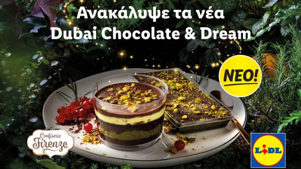 Ακολουθώντας τις σύγχρονες γαστρονομικές τάσεις και αφουγκραζόμενη τις προτιμήσεις των καταναλωτών, η Lidl Ελλάς φέρνει σε όλα της τα καταστήματα τα διάσημα Dubai Chocolate & Dream, που έχουν κατακτήσει τα μέσα κοινωνικής δικτύωσης. Από την Πέμπτη 5 Δεκεμβρίου, οι πελάτες μπορούν να ανακαλύψουν αυτές τις μοναδικές γεύσεις και να απολαύσουν μια αξέχαστη εμπειρία. Πρόκειται για μια πρωτοποριακή πρόταση που συνδυάζει τη γευστική παράδοση της Μέσης Ανατολής με τη διαχρονική απόλαυση της σοκολάτας.
