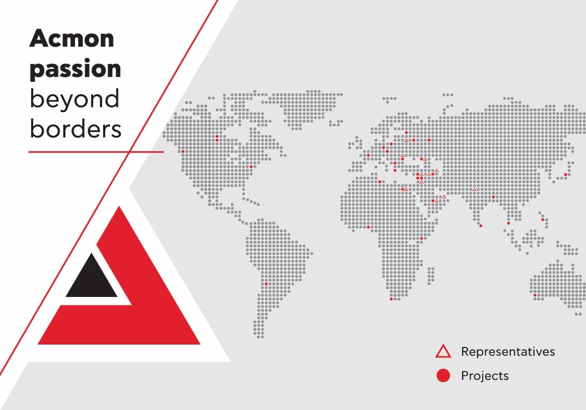 Η διεθνής παρουσία του Ομίλου Acmon, από τη Δυτική Ευρώπη μέχρι τη Βόρεια και Υποσαχάρια Αφρική, μας έχει δώσει πολύτιμη εμπειρία σε αγορές με διαφορετικά επίπεδα ωριμότητας, τεχνολογικής κουλτούρας και ρυθμιστικού πλαισίου.
