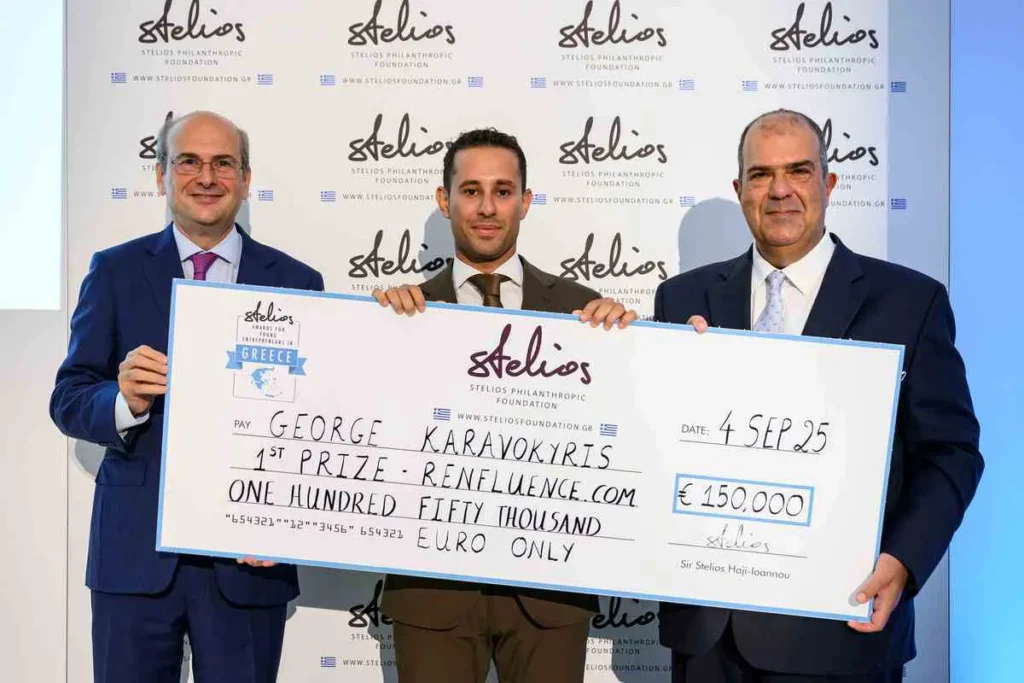 Μεγάλος νικητής αναδείχθηκε ο Γιώργος Καραβοκύρης, Founder and CEO της πλατφόρμας Rênfluence αποσπώντας το χρηματικό έπαθλο των €150.000. Η Rênfluence είναι μια AI-powered πλατφόρμα influencer marketing που προσφέρει πλήρη SaaS πρόσβαση με προηγμένα εργαλεία, όπως Influencer Discovery, AI Video Analysis, Profile-specific AI Chat, Competitor Analysis, Sentiment Analysis και Media Benchmarks. Πέρα από την πλατφόρμα, λειτουργεί και ως full-service Influencer Marketing agency, διατηρώντας μακροχρόνιες συνεργασίες με global brands. Με την επέκταση μέσω του Rênfluence Lite, του subscription-based μοντέλου, το data-driven Influencer marketing έγινε προσβάσιμο σε ακόμα περισσότερα brands στην Ευρώπη. Ο Γιώργος Καραβοκύρης δήλωσε για το βραβείο του «Ευχαριστώ θερμά το Stelios Philanthropic Foundation και τον Sir Στέλιο Χατζηιωάννου για αυτή τη μεγάλη τιμή. Το βραβείο θα βοηθήσει ουσιαστικά στην ανάπτυξη της Rênfluence και μας δίνει δύναμη να συνεχίσουμε. Δεσμεύομαι με τη σειρά μου να στηρίξω τις επόμενες γενιές νέων επιχειρηματιών στο μέλλον».