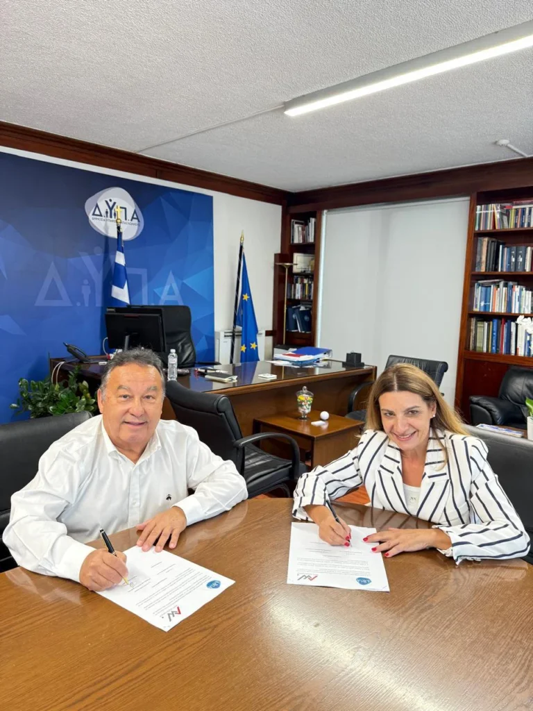 Η Διοικήτρια της Δημόσιας Υπηρεσίας Απασχόλησης (ΔΥΠΑ), Γιάννα Χορμόβα, και ο Πρόεδρος και Διευθύνων Σύμβουλος της Alfa Wood Group, Βασίλης Αδαμόπουλος, την Τετάρτη 10 Σεπτεμβρίου υπέγραψαν μνημόνιο συνεργασίας, με σκοπό την ενίσχυση της μαθητείας και της επαγγελματικής εκπαίδευσης στον βιομηχανικό κλάδο.