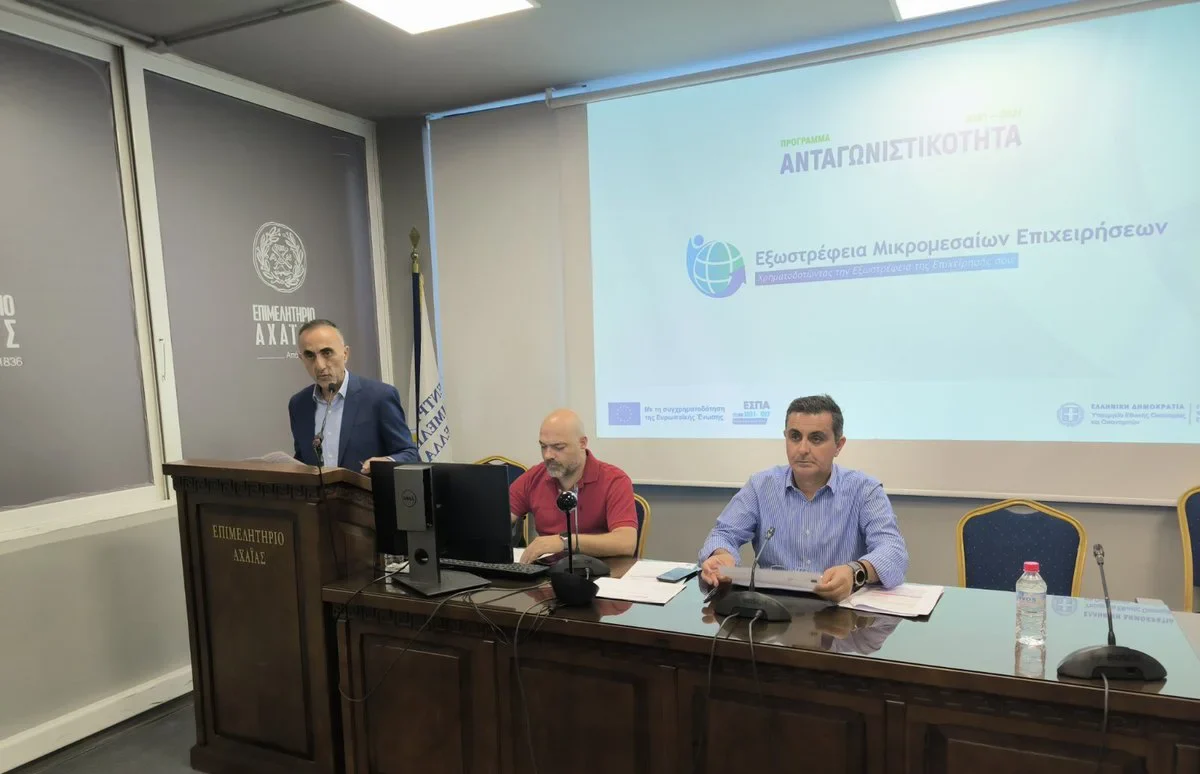 «Όταν αναλάβαμε, ως διοίκηση, θέσαμε ως στόχο να παρέχουμε ενημέρωση σε όλα τα μέλη μας, σε κάθε επιχειρηματία, για όλα τα επιδοτούμενα προγράμματα», τόνισε από την πλευρά του ο Α΄ αντιπρόεδρος του Επιμελητηρίου Αχαΐας, Αντώνης Κουνάβης, ενώ η διευθύντρια της Διαχειριστικής Ευρωπαϊκών Προγραμμάτων Δυτικής Ελλάδας, Μάγδα Πετροπούλου, προέτρεψε τους παριστάμενους να δώσουν ιδιαίτερη βαρύτητα στη Δράση «Εξωστρέφεια Μικρομεσαίων Επιχειρήσεων». Κι αυτό διότι ενισχύει τη διεθνή παρουσία των προϊόντων τους, μέσω της συμμετοχής τους σε εμπορικές Εκθέσεις, τόσο στην Ευρωπαϊκή Ένωση όσο και σε τρίτες χώρες.