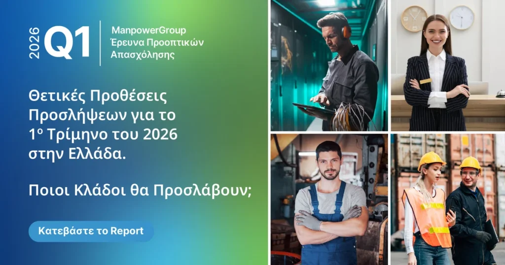 Δήλωση του Διευθύνοντος Συμβούλου της ManpowerGroup Greece, κ. Χαράλαμπου Καζαντζίδη: «Τα αποτελέσματα της Έρευνας Προοπτικών Απασχόλησης για το 1ο τρίμηνο του 2026 δείχνουν ότι η ελληνική αγορά εργασίας συνεχίζει να κινείται σε σταθερά θετική τροχιά. Οι προοπτικές ενισχύονται τόσο σε ετήσια όσο και σε τριμηνιαία βάση, με τους κλάδους: Τεχνολογία, Μέσα & Τηλεπικοινωνίες και Τουρισμό, Ξενοδοχεία & Εστίαση να παρουσιάζουν τη μεγαλύτερη άνοδο. Παράλληλα, η βελτίωση που καταγράφεται στο σύνολο των κλάδων ενισχύεται από σταθερούς οικονομικούς δείκτες, όπως η ισχυρή κατανάλωση, οι αυξημένες επενδύσεις και η ενδυνάμωση της παραγωγής, με τη μεταποιητική δραστηριότητα να δείχνει ιδιαίτερη δυναμική. Η ζήτηση για εξειδικευμένες δεξιότητες παραμένει υψηλή και η ικανότητα των οργανισμών να προσελκύουν και να αναπτύσσουν τους κατάλληλους ανθρώπους θα αποτελέσει κρίσιμο παράγοντα ανταγωνιστικότητας. Στη ManpowerGroup συνεχίζουμε να στηρίζουμε επιχειρήσεις και εργαζόμενους, συμβάλλοντας στη μετάβαση προς μια πιο ανθεκτική και βιώσιμη αγορά εργασίας.»