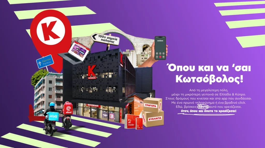 Ο τρόπος που οι άνθρωποι ζουν, κινούνται και καλύπτουν τις καθημερινές τους ανάγκες έχει αλλάξει. Σε αυτή τη νέα, καθημερινότητα, η Κωτσόβολος δηλώνει παρούσα με ένα ξεκάθαρο μήνυμα: «Όπου και να ’σαι, Κωτσόβολος». Ένα μήνυμα που αποτυπώνει τη διαχρονική δέσμευση της εταιρείας, για μία εύκολη και ευέλικτη εμπειρία αγορών και εξυπηρέτησης.