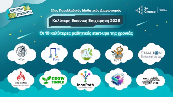 To Junior Achievement Greece ανακοινώνει τις 10 καινοτόμες μαθητικές «startup» που ξεχώρισαν και θα διαγωνισθούν στον 21ο Πανελλαδικό Μαθητικό Διαγωνισμό «Καλύτερη Εικονική Επιχείρηση 2026». Τα πρωτότυπα προϊόντα/υπηρεσίες που δημιούργησαν τα παιδιά «επιχειρηματίες», εντυπωσίασαν την κριτική επιτροπή του οργανισμού, η οποία, αφού εξέτασε αναλυτικά τα περισσότερα από 100 business plans των μαθητικών ομάδων από όλη την Ελλάδα, επέλεξε τις 10 καλύτερες που θα διεκδικήσουν το πρώτο βραβείο στον εθνικό τελικό του παγκόσμιου προγράμματος/διαγωνισμού «Εικονική Επιχείρηση – JA Company Program».