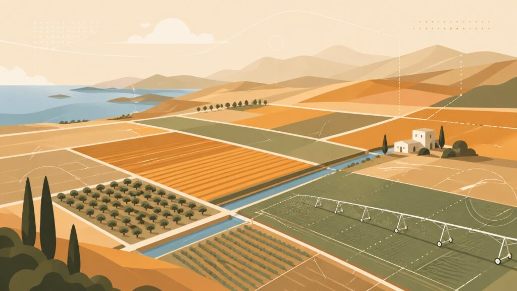 Στο ίδιο πλαίσιο, η διαχείριση του νερού αναδεικνύεται σε κεντρικό ζήτημα. Η γεωργία καταναλώνει 80% έως 85% του συνολικού νερού στη χώρα, ενώ περίπου 450 Τοπικοί και Γενικοί Οργανισμοί Εγγείων Βελτιώσεων διαχειρίζονται το μεγαλύτερο μέρος των συλλογικών αρδευτικών έργων και εξυπηρετούν σχεδόν 45% της αρδευόμενης αγροτικής γης. Η ανάλυση συνδέει το ζήτημα των υδάτων με την ανάγκη καλύτερης οργάνωσης της άρδευσης, πιο ορθολογικής χρήσης των πόρων και αντιμετώπισης δυσλειτουργιών στη διαχείριση των σχετικών υποδομών.