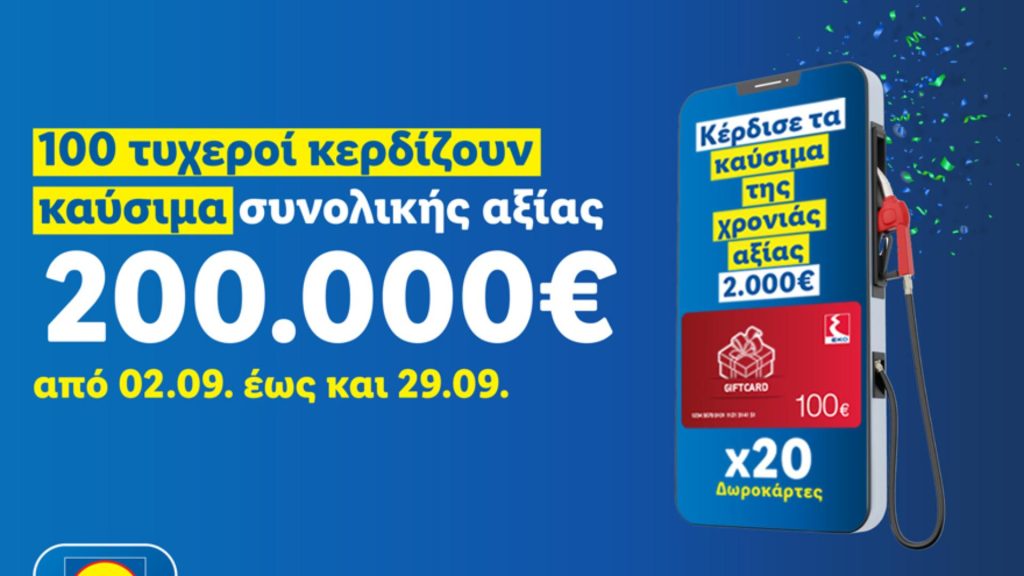 Με αφορμή τα 25 χρόνια λειτουργίας στην Ελλάδα, η Lidl Ελλάς συνεχίζει να επιβραβεύει το καταναλωτικό της κοινό με ακόμη έναν επετειακό διαγωνισμό μέσω της εφαρμογής Lidl Plus, προσφέροντας δωροκάρτες ΕΚΟ συνολικής αξίας 200.000€ σε 100 τυχερούς. Κάθε ένας από τους νικητές θα κερδίσει από 2.000€ (20 δωροκάρτες αξίας 100€ έκαστη), εξασφαλίζοντας καύσιμα για όλη τη χρονιά.
