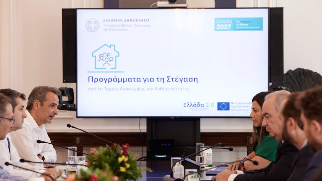 Ο Πρωθυπουργός Κυριάκος Μητσοτάκης προήδρευσε το πρωί σε σύσκεψη με αντικείμενο το πλέγμα δράσεων που υλοποιείται για την απόκτηση πρώτης κατοικίας και την αναβάθμιση του οικιστικού αποθέματος, με αιχμή τα νέα προγράμματα «Σπίτι μου 2» και «Αναβαθμίζω το Σπίτι μου», που συγχρηματοδοτούνται από το Ταμείο Ανάκαμψης και Ανθεκτικότητας.